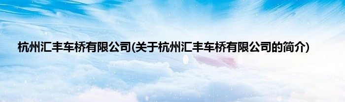 本文关于杭州汇丰车桥有限公司的简介就讲解完毕,希望对大家有所帮助。