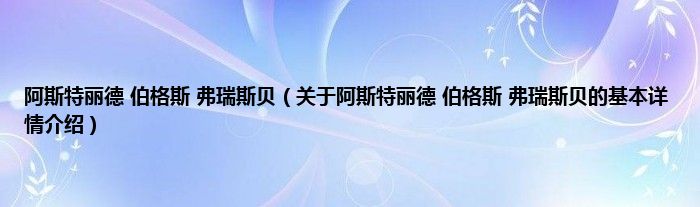 本文关于阿斯特丽德 伯格斯 弗瑞斯贝的基本详情介绍就讲解完毕,希望对大家有所帮助。