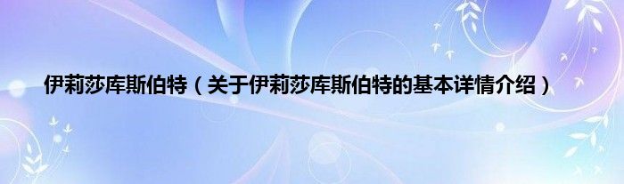 本文关于伊莉莎库斯伯特的基本详情介绍就讲解完毕,希望对大家有所帮助。