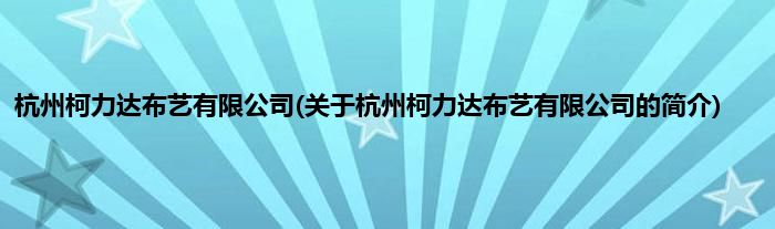 本文关于杭州柯力达布艺有限公司的简介就讲解完毕,希望对大家有所帮助。