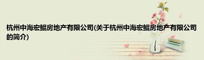 本文关于杭州中海宏鲲房地产有限公司的简介就讲解完毕,希望对大家有所帮助。