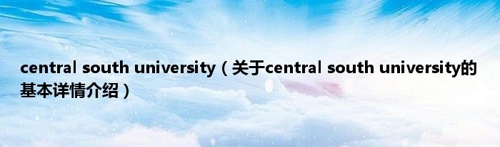 本文关于central south university的基本详情介绍就讲解完毕,希望对大家有所帮助。