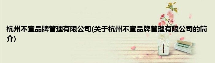 本文关于杭州不宣品牌管理有限公司的简介就讲解完毕,希望对大家有所帮助。