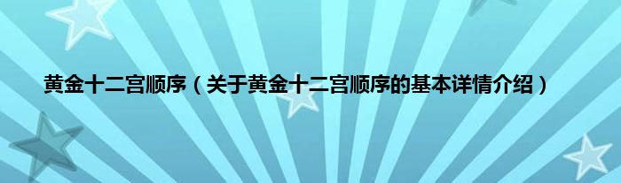 本文关于黄金十二宫顺序的基本详情介绍就讲解完毕,希望对大家有所帮助。