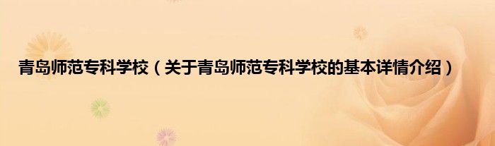 本文关于青岛师范专科学校的基本详情介绍就讲解完毕,希望对大家有所帮助。