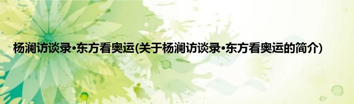 本文关于杨澜访谈录·东方看奥运的简介就讲解完毕,希望对大家有所帮助。