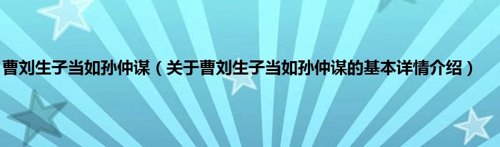 本文关于曹刘生子当如孙仲谋的基本详情介绍就讲解完毕,希望对大家有所帮助。