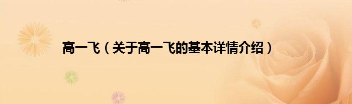 本文关于高一飞的基本详情介绍就讲解完毕,希望对大家有所帮助。