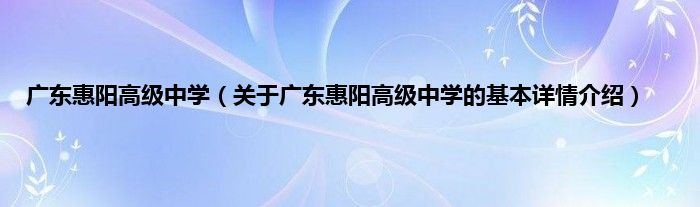 本文关于广东惠阳高级中学的基本详情介绍就讲解完毕,希望对大家有所帮助。