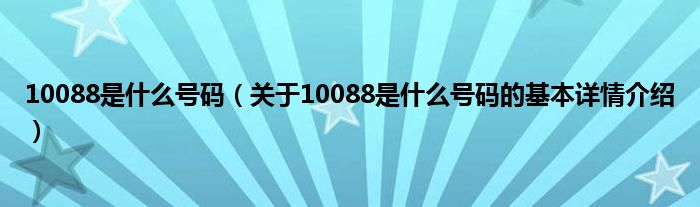 本文关于10088是什么号码的基本详情介绍就讲解完毕,希望对大家有所帮助。