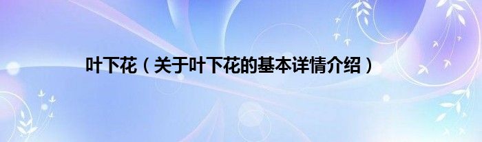 本文关于叶下花的基本详情介绍就讲解完毕,希望对大家有所帮助。