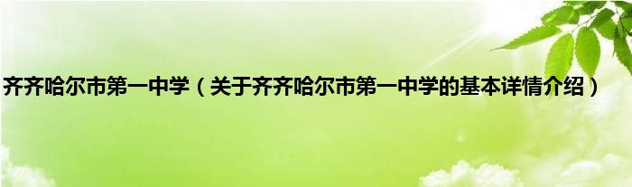 本文关于齐齐哈尔市第一中学的基本详情介绍就讲解完毕,希望对大家有所帮助。