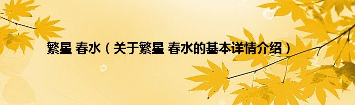 本文关于繁星 春水的基本详情介绍就讲解完毕,希望对大家有所帮助。