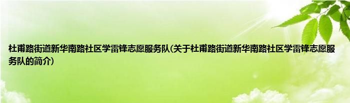 杜甫路街道新华南路社区学雷锋志愿服务队(关于杜甫路街道新华南路社区学雷锋志愿服务队的简介)