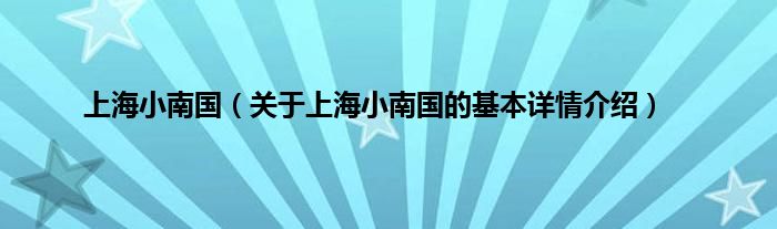 本文关于上海小南国的基本详情介绍就讲解完毕,希望对大家有所帮助。