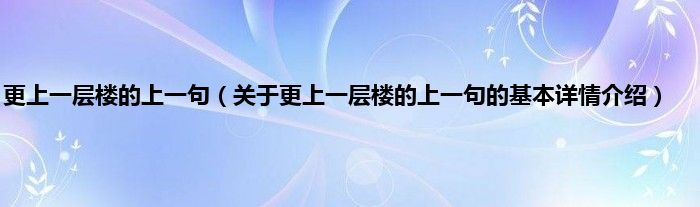 本文关于更上一层楼的上一句的基本详情介绍就讲解完毕,希望对大家有所帮助。
