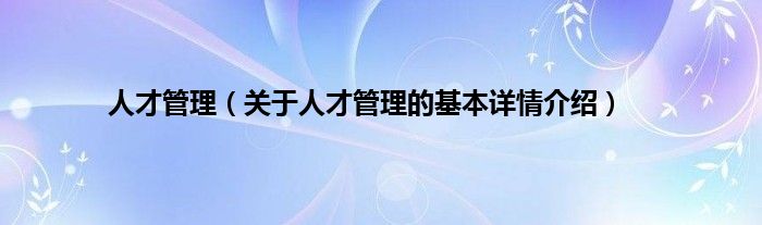 本文关于人才管理的基本详情介绍就讲解完毕,希望对大家有所帮助。