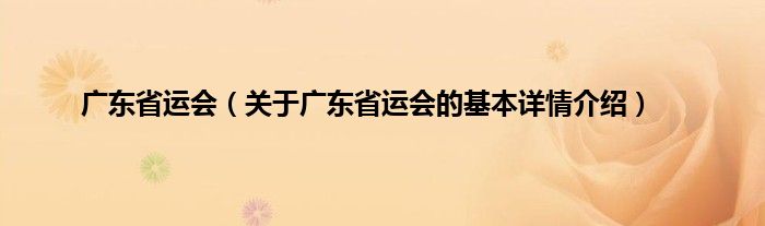 本文关于广东省运会的基本详情介绍就讲解完毕,希望对大家有所帮助。