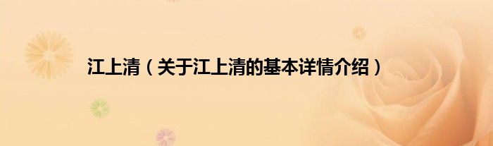 本文关于江上清的基本详情介绍就讲解完毕,希望对大家有所帮助。