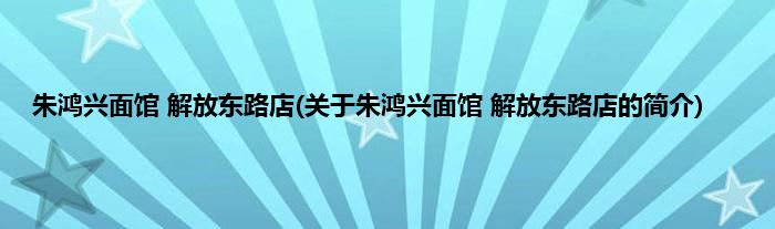 大家好,朱鸿兴面馆 解放东路店,关于朱鸿兴面馆 解放东路店的简介很多人还不知道,现在让我们一起来看看吧!