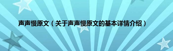 本文关于声声慢原文的基本详情介绍就讲解完毕,希望对大家有所帮助。