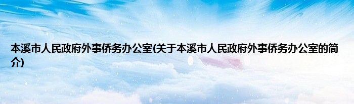 大家好,本溪市人民政府外事侨务办公室,关于本溪市人民政府外事侨务办公室的简介很多人还不知道,现在让我们一起来看看吧!