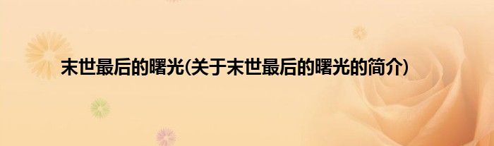 本文关于末世最后的曙光的简介就讲解完毕,希望对大家有所帮助。