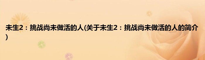 本文关于未生2:挑战尚未做活的人的简介就讲解完毕,希望对大家有所帮助。
