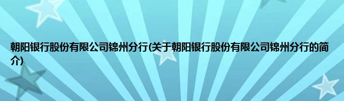 本文关于朝阳银行股份有限公司锦州分行的简介就讲解完毕,希望对大家有所帮助。