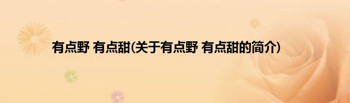 本文关于有点野,有点甜的简介就讲解完毕,希望对大家有所帮助。