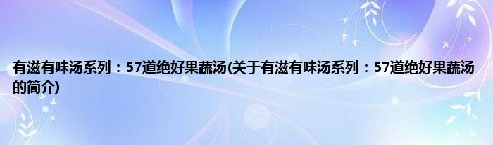 1、 《有滋有味汤系列:57道绝好果蔬汤》是2005年10月吉林科学技术出版社出版的图书。