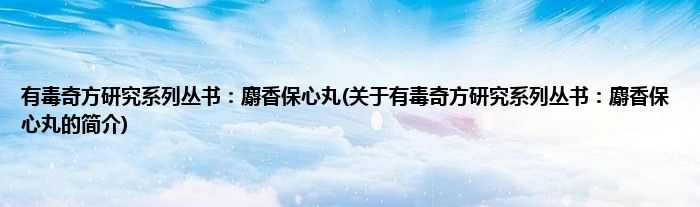 大家好,有毒奇方研究系列丛书:麝香保心丸,关于有毒奇方研究系列丛书:麝香保心丸的简介很多人还不知道,现在让我们一起来看看吧!