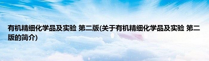 本文关于有机精细化学品及实验 第二版的简介就讲解完毕,希望对大家有所帮助。
