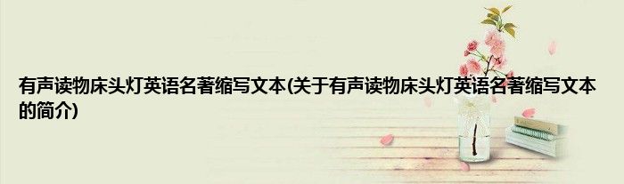 有声读物床头灯英语名著缩写文本(关于有声读物床头灯英语名著缩写文本的简介)