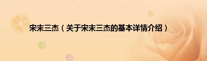 本文关于宋末三杰的基本详情介绍就讲解完毕,希望对大家有所帮助。