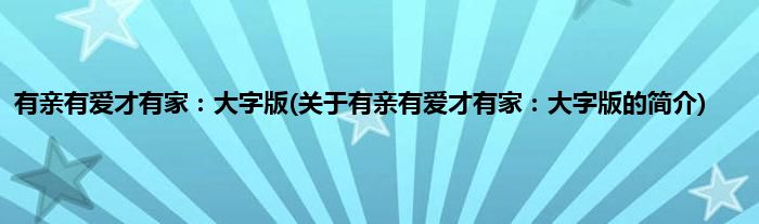 大家好,有亲有爱才有家:大字版,关于有亲有爱才有家:大字版的简介很多人还不知道,现在让我们一起来看看吧!
