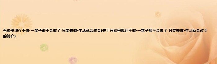 本文关于有些事现在不做·一辈子都不会做了-只要去做·生活就会改变的简介就讲解完毕,希望对大家有所帮助。