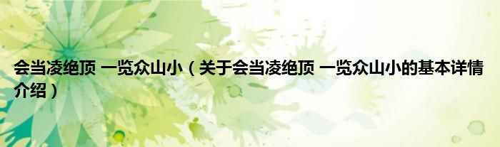 本文关于会当凌绝顶 一览众山小的基本详情介绍就讲解完毕,希望对大家有所帮助。