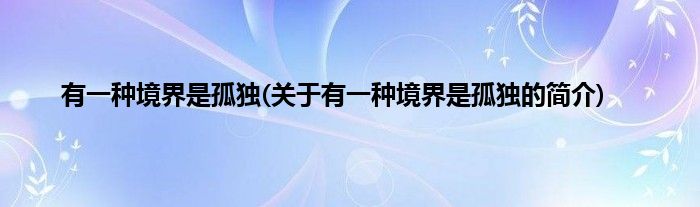 本文关于有一种境界是孤独的简介就讲解完毕,希望对大家有所帮助。