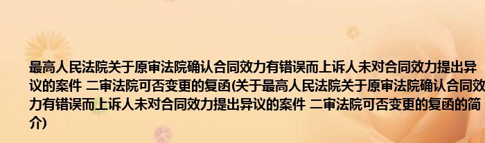 《最高人民法院关于原审法院确认合同效力有错误而上诉人未对合同效力提出异议的案件。