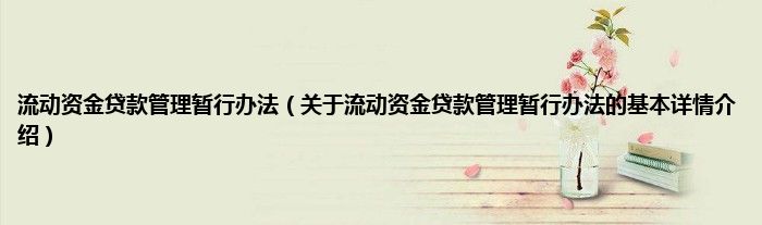 本文关于流动资金贷款管理暂行办法的基本详情介绍就讲解完毕,希望对大家有所帮助。