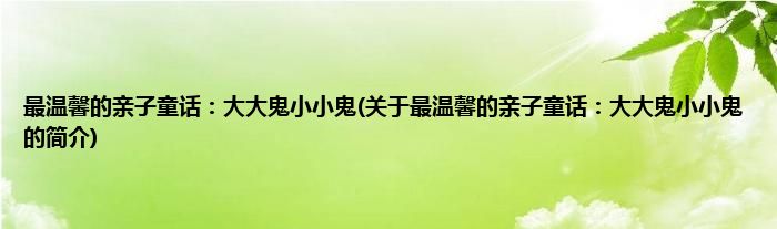 本文关于最温馨的亲子童话:大大鬼小小鬼的简介就讲解完毕,希望对大家有所帮助。