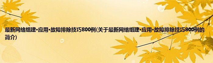 本文关于最新网络组建·应用·故障排除技巧800例的简介就讲解完毕,希望对大家有所帮助。