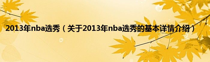本文关于2013年nba选秀的基本详情介绍就讲解完毕,希望对大家有所帮助。