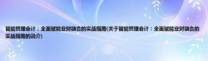 本文关于智能管理会计:全面赋能业财融合的实战指南的简介就讲解完毕,希望对大家有所帮助。