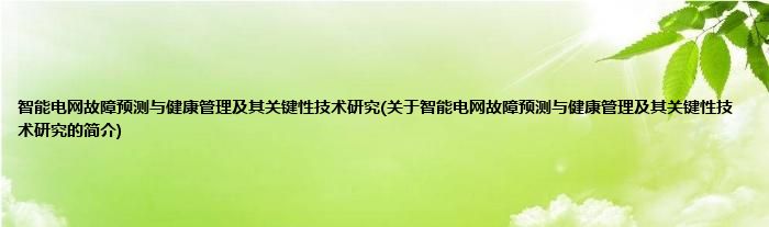 本文关于智能电网故障预测与健康管理及其关键性技术研究的简介就讲解完毕,希望对大家有所帮助。