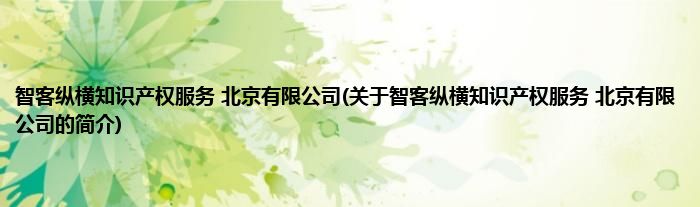 本文关于智客纵横知识产权服务 北京有限公司的简介就讲解完毕,希望对大家有所帮助。