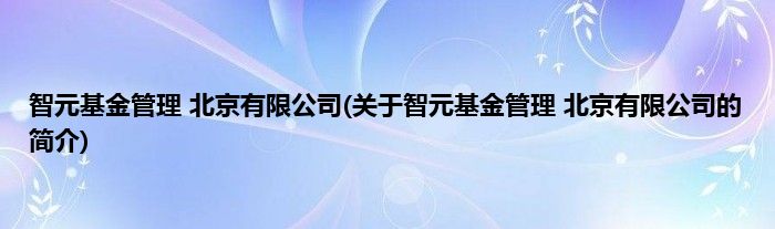 大家好,智元基金管理 北京有限公司,关于智元基金管理 北京有限公司的简介很多人还不知道,现在让我们一起来看看吧!