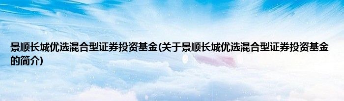 大家好,景顺长城优选混合型证券投资基金,关于景顺长城优选混合型证券投资基金的简介很多人还不知道,现在让我们一起来看看吧!