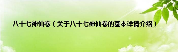 本文关于八十七神仙卷的基本详情介绍就讲解完毕,希望对大家有所帮助。
